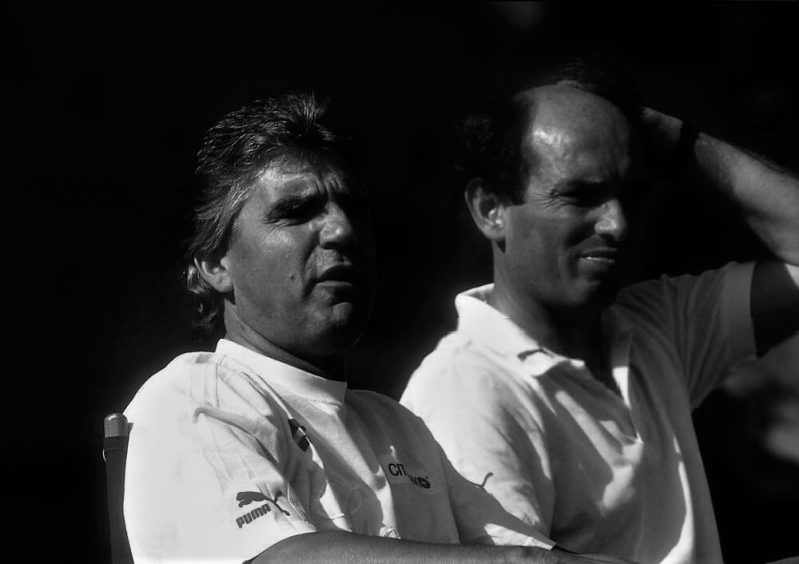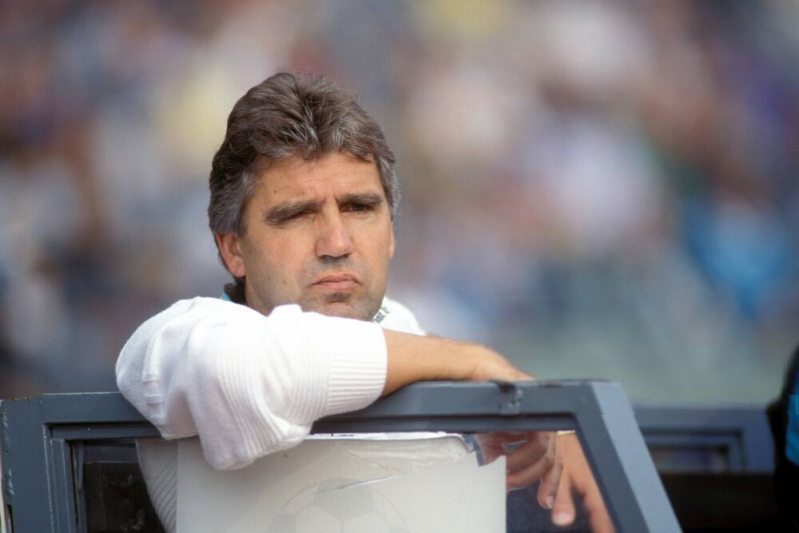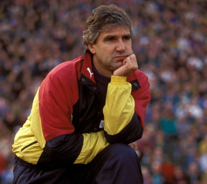 Trainer Jörg Berger im Jahr 1991 zusammen mit Pierre Littbarski
