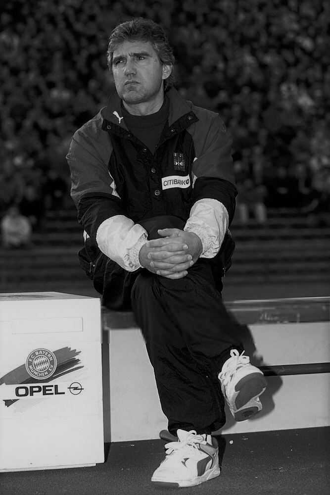 Trainer Jörg Berger im Jahr 1991 auf der Beerdigung von Maurice ,,Mucki" Banach