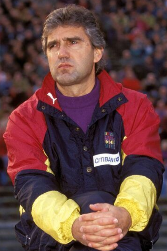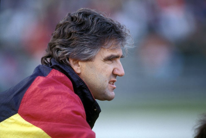 Trainer Jörg Berger im Jahr 1991 zusammen mit Pierre Littbarski und Co-Trainer Hannes Linssen