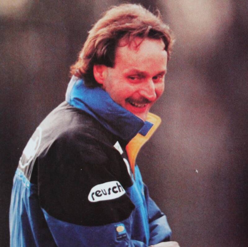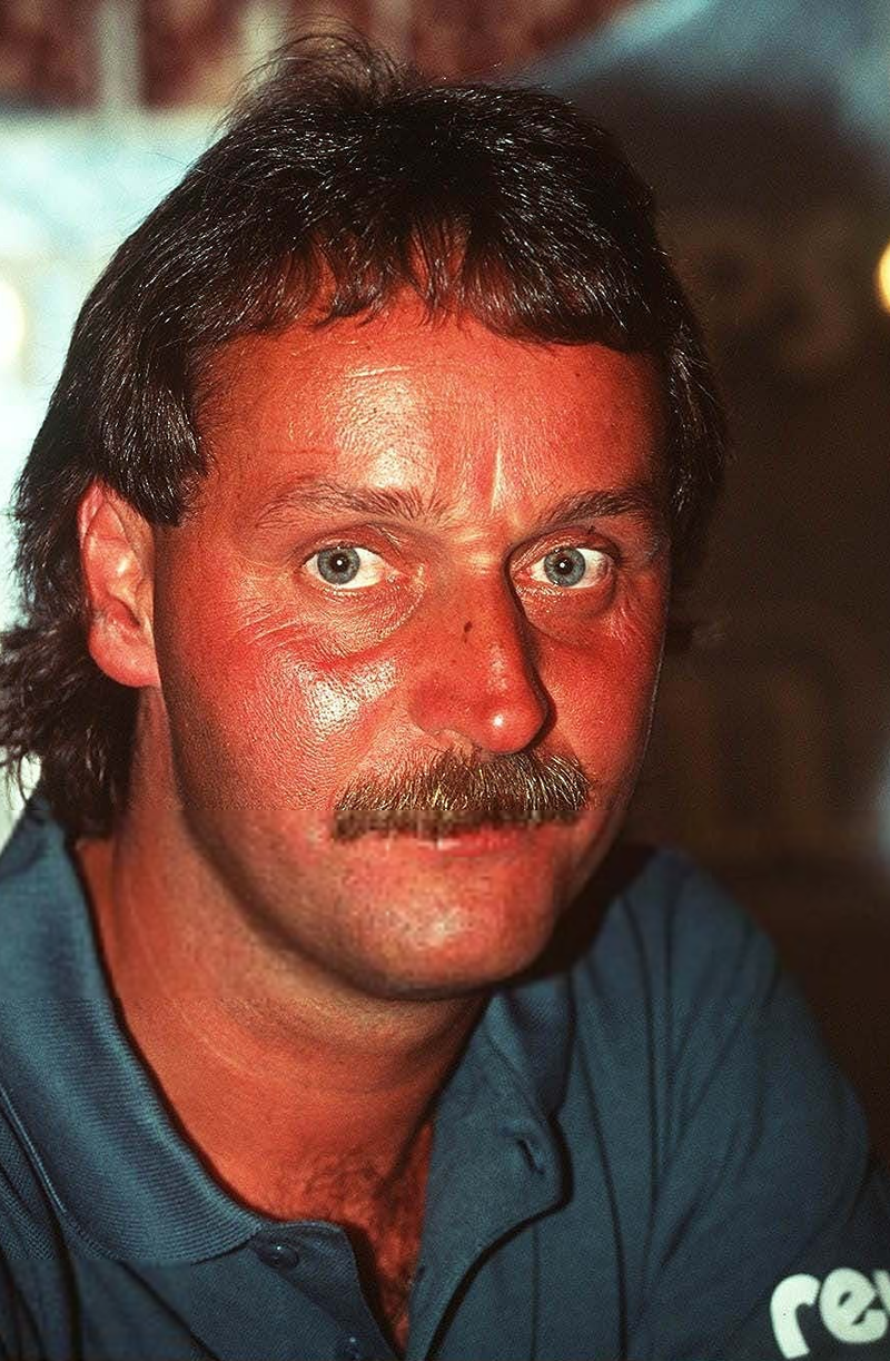 Trainer Peter Neururer im Jahr 1996 bei seiner Trainervorstellung