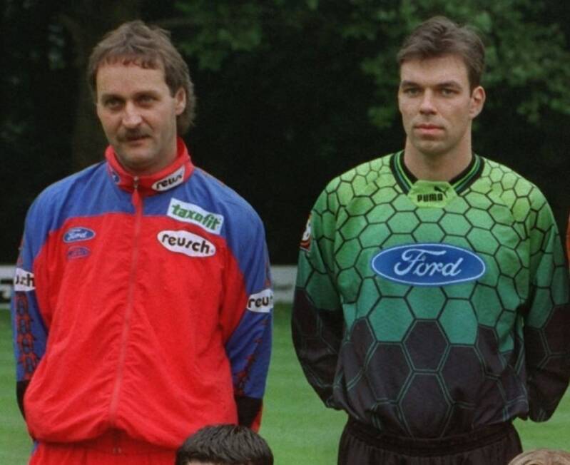 Trainer Peter Neururer im Jahr 1997 zusammen mit Andreas Menger