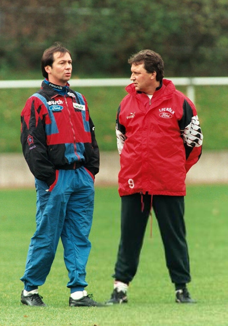 Trainer Stephan Engels im Jahr 1996 zusammen mit FC-Legende Heinz Flohe