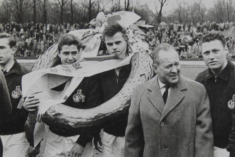 Vlnr : Müller - Thielen - Thönnes - Pott - Präsident Franz Kremer - Trainer Cajkovski - Habig - Wilden - Schnellinger - Sturm - Ewert - Schäfer