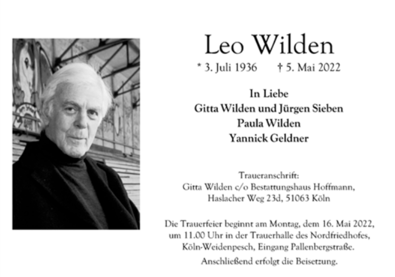 Leo Wilden verstarb am 5.Mai 2022 in Köln