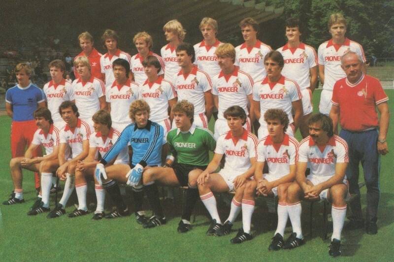 Unten vlnr : Gerber - Okudera - Kössling - Schumacher - Ehrmann - Prestin - Littbarski - Konopka