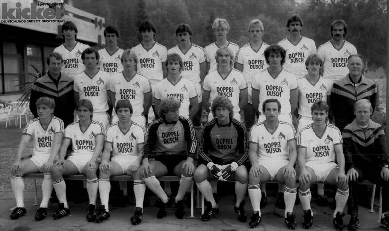 Unten vlnr : Müller - Littbarski - Prestin - Konopka - Slijvo - Ehrmann - Mennie - Schumacher - Haas - Schmidt - Fischer - Zimmermann