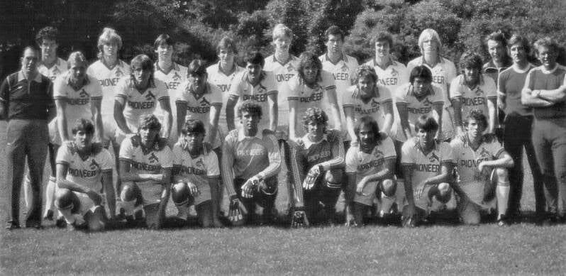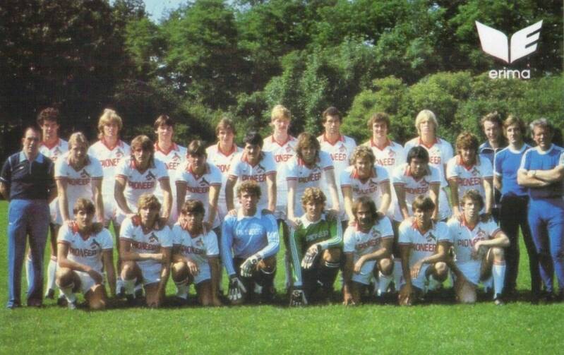 Mitte vlnr. : Thönnes - Willmer - Körner - Kerscher - Aussem - Botteron - Woodcock - Okudera - Littbarski - Herings - Löhr - Heddergott