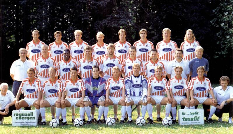 Unten vlnr : Müller - Kohn - Rudy - Labbadia - Illgner - Greiner - Kraft - Higl - Heldt - Janssen - Schäfer