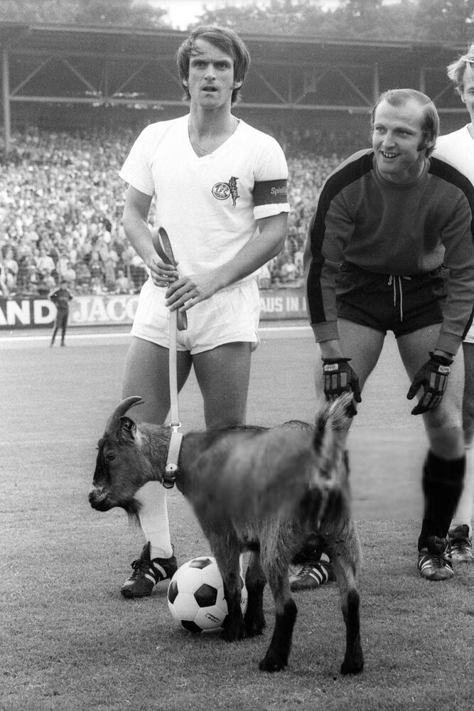 Vlnr. : Geissbock ,,Hennes III" - Wolfgang Overath - Manfred Manglitz