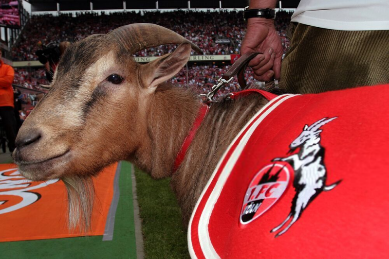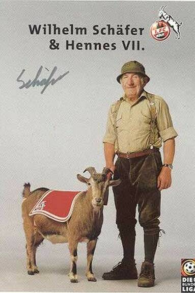 Betreuer Wilhelm Schäfer mit Geissbock ,,Hennes VII" - Stefan Wessels und Ex-FC-Trainer Peter Neururer