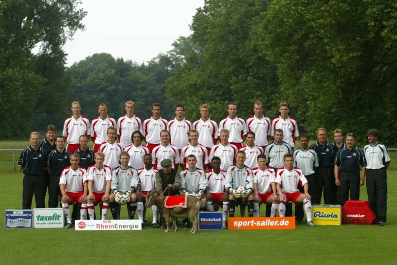 Vlnr. : Trainer Christoph Daum - Betreuer Ingo Reipka - Betreuerin Hildegard Schäfer - Geissbock ,,Hennes VII"