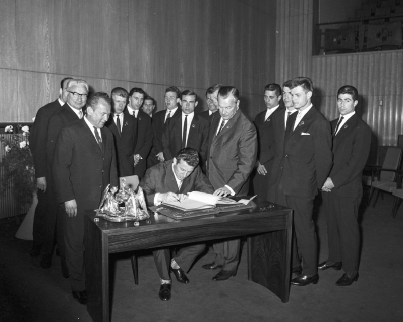 Vlnr. : Präsident Franz Kremer - Leo Wilden - Georg Stollenwerk - Werner Müller - Heinz Neubauer - Karl-Heinz Ripkens - Oberbürgermeister Burauen