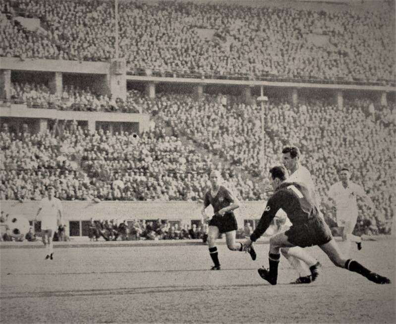 Fritz Pott schiesst denn bal vorbei denn Torwart und so steht es 4-0 fur unseren FC
