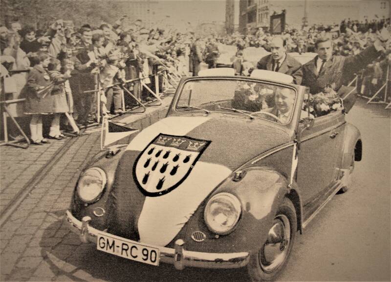 Südbahnhof , Köln Neustadt-Süd : Gleich kommen die Meister , rechts im auto wartet schon Geissbock "Hennes I" und die Kapelle spielt sich ein