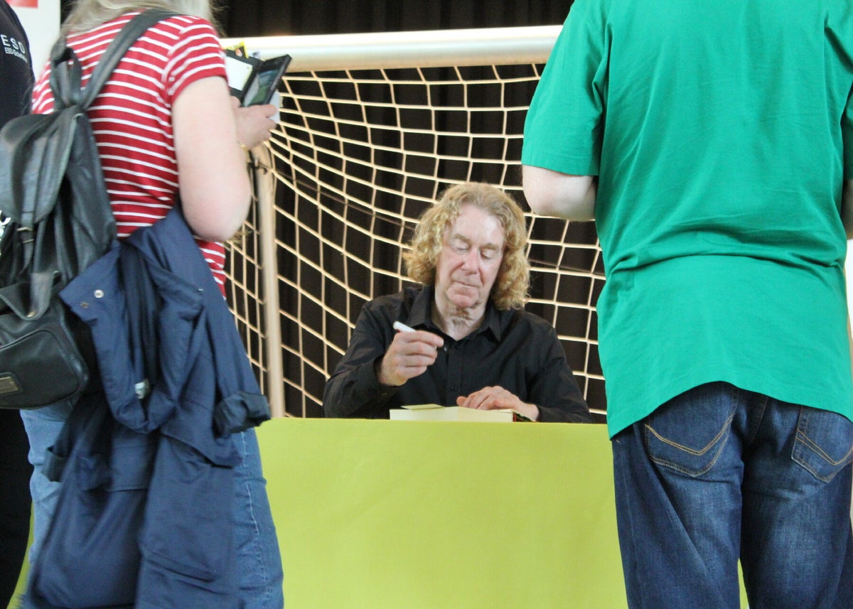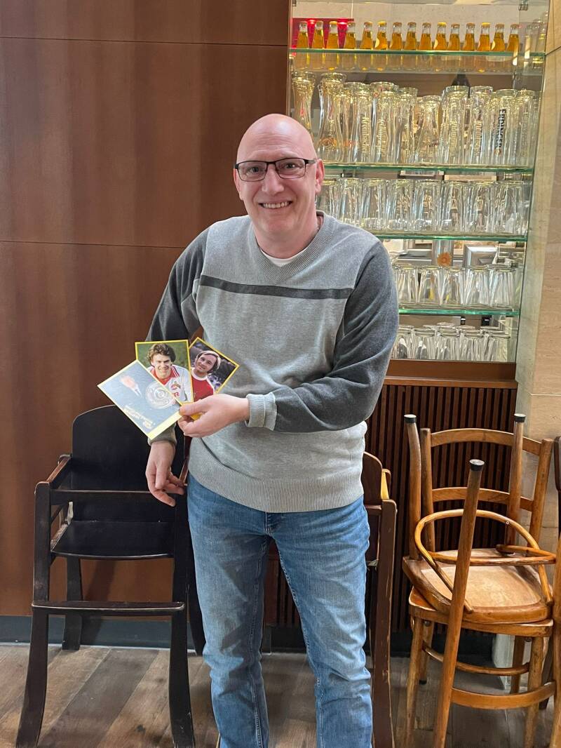Ich mit die Autogrammkarten für die Autogrammstunde der Spieler