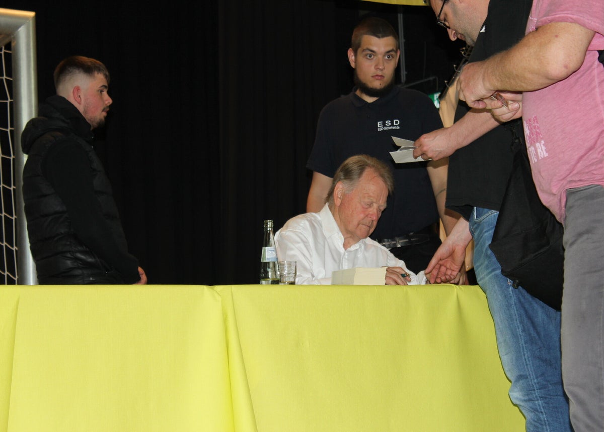 Ich posierend mit dem Fussball-Sammlerbörse Poster und FC-Legende und Gast für die Autogrammstunde Karl-Heinz Thielen